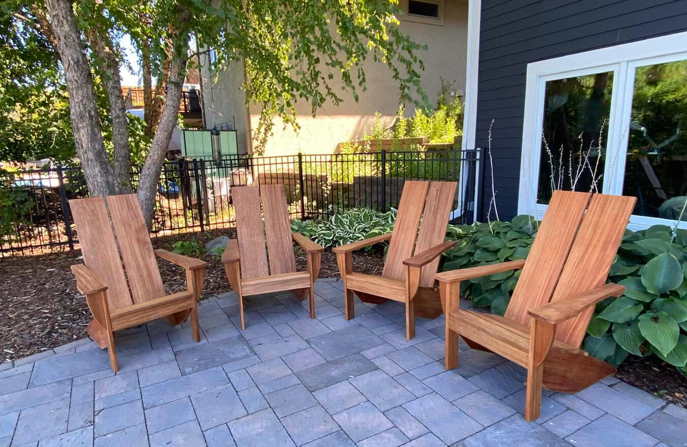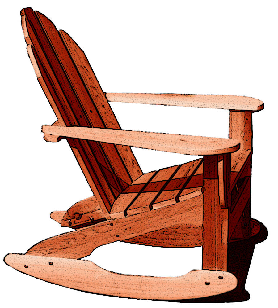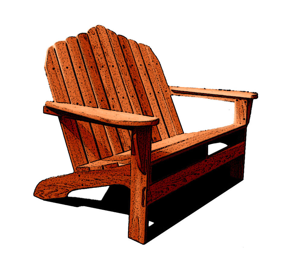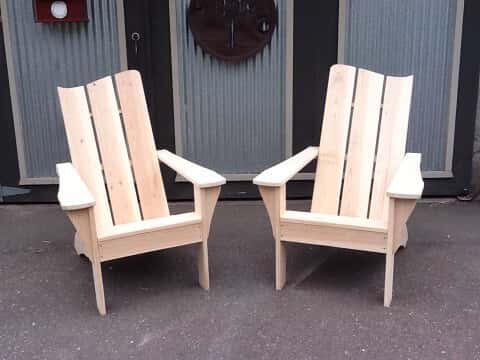 Our version of the first Adirondack chair patented in 1905. Art deco, modern with a tall back. Pine, cedar, and mahogany.