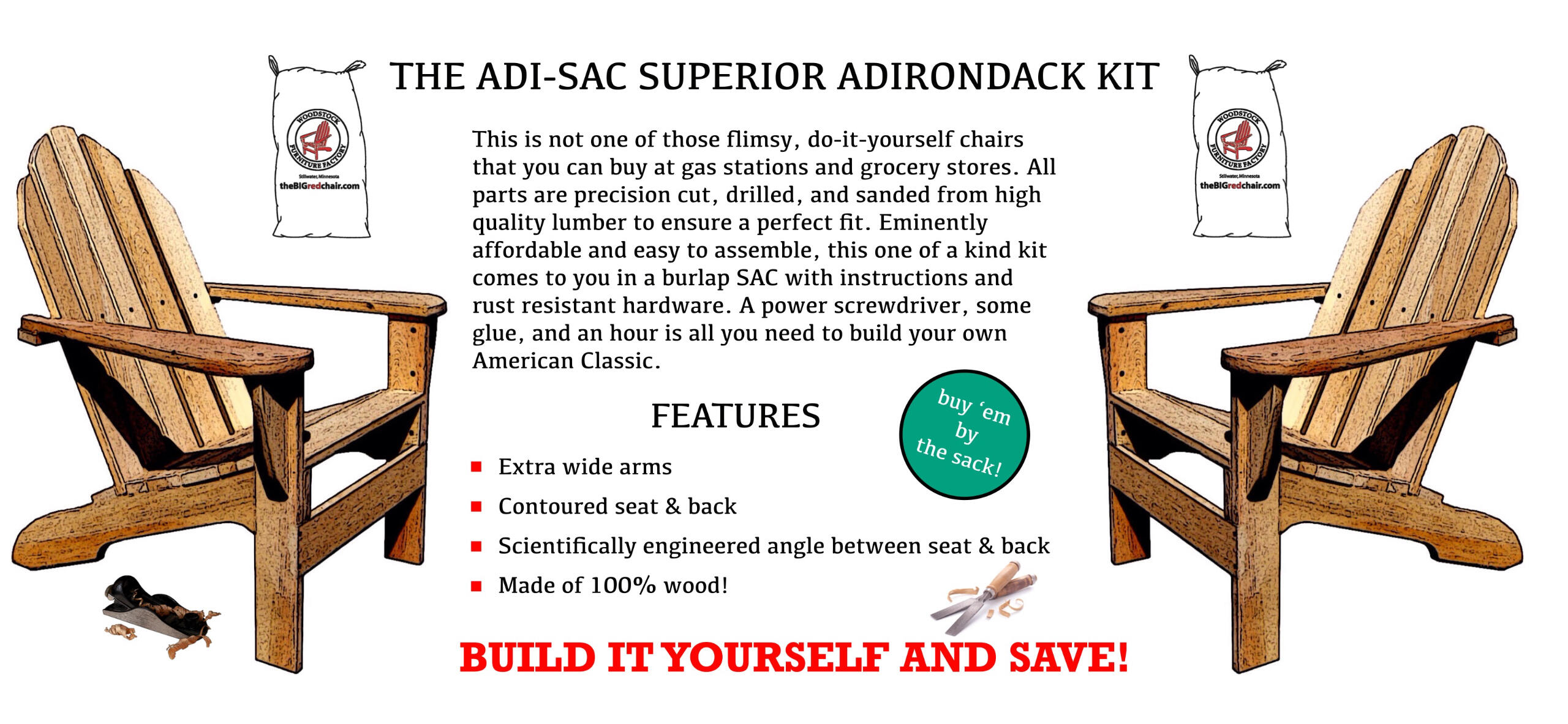 we began our furniture company with one product - the adi-sac Adirondack chair kit. We perfected the design and packaged it in a heavy burlap sack. Woodstock Kits assemble with remarkable ease. All you need is some glue, a Phillips screwdriver, a little bit of time, and you can have the pleasure of building something functional and beautiful that will last for years. If building a kit doesn’t fit your schedule, and you live within our delivery area, just order your Furniture assembled and we will deliver it to your favorite garden spot.