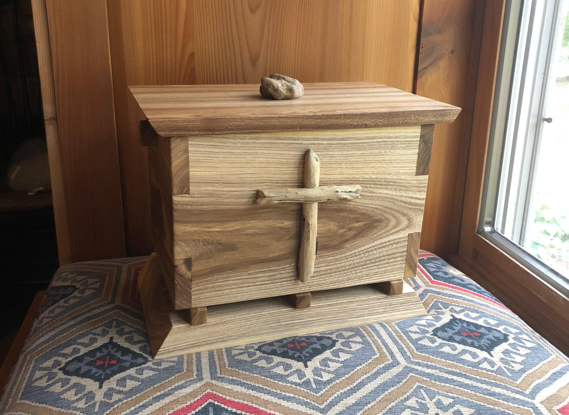 the last cabinet you’re ever going to need. If you’ve been to our shop, you’ve probably seen a number of caskets off to the side as they are always in production. It’s a difficult time for anyone in need of a casket or urn and we would be honored to assist you. These are carefully handmade one at a time and we use no metal fasteners.