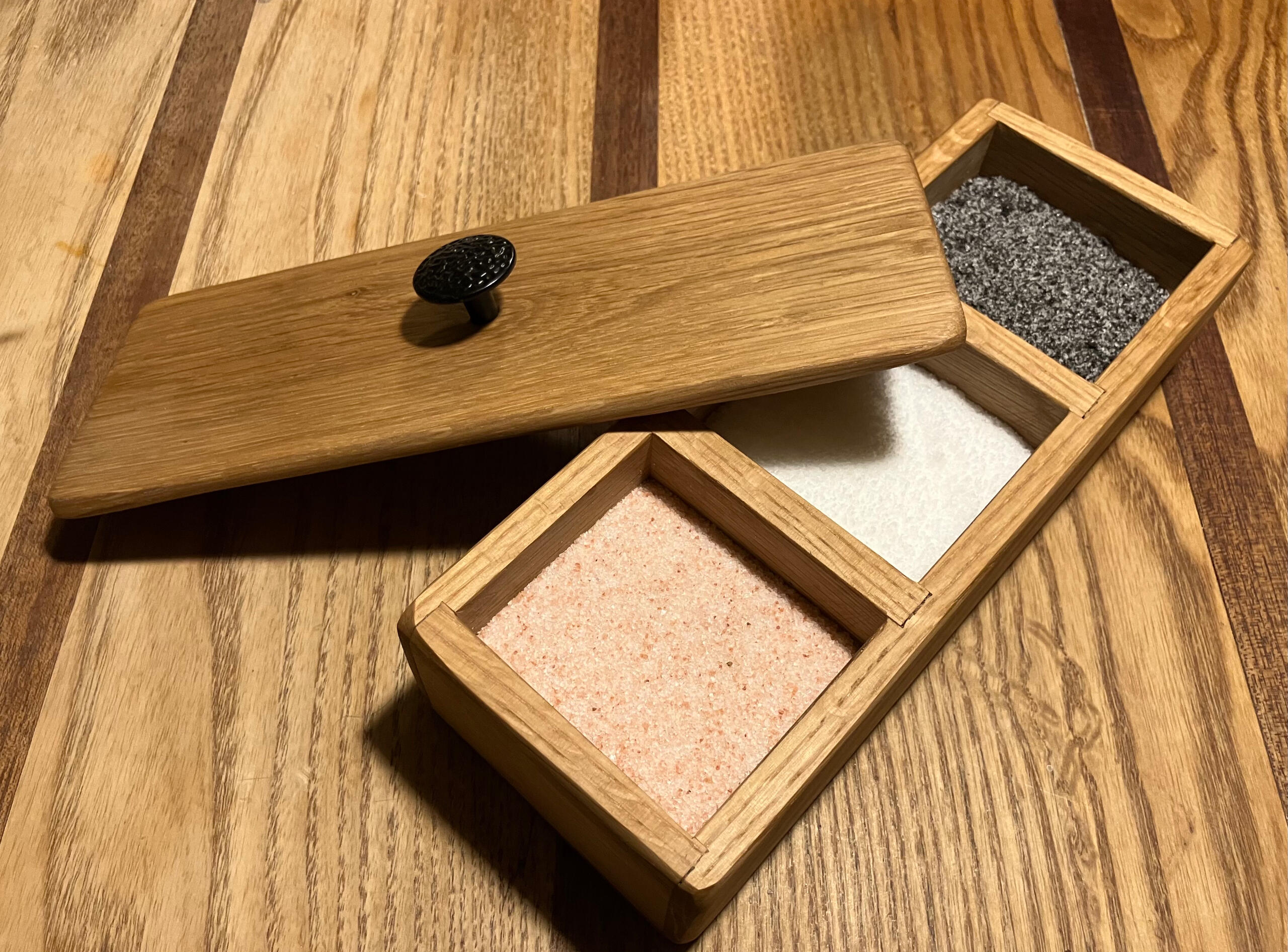 Our hand-crafted white oak salt box is a signature addition to any kitchen.