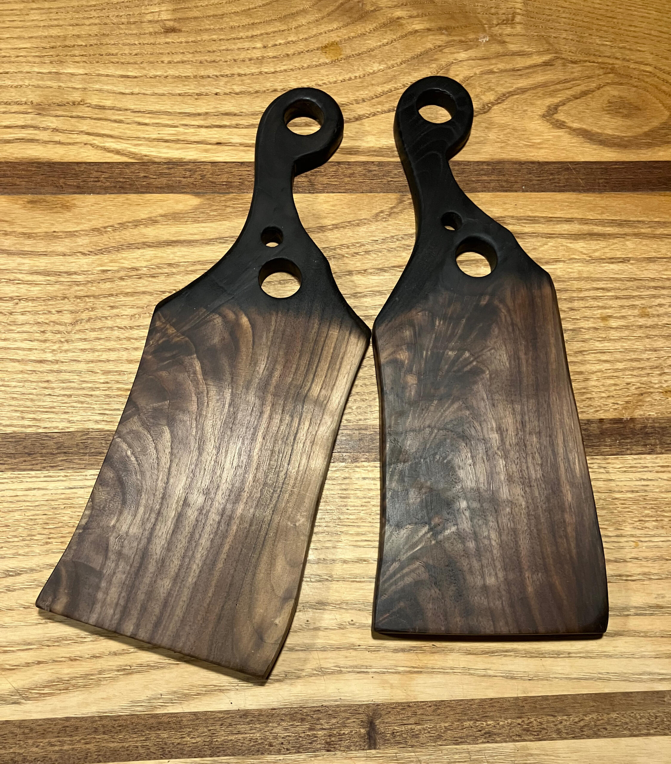 We’ve been making Black walnut charcuterie boards in several designs for years. Always a little rustic, each one is handmade and unique. Sets of 4 or 8. Hand rubbed board butter finish is food safe and allows for easy clean up. We also make