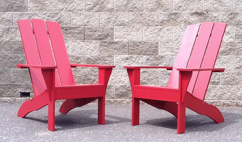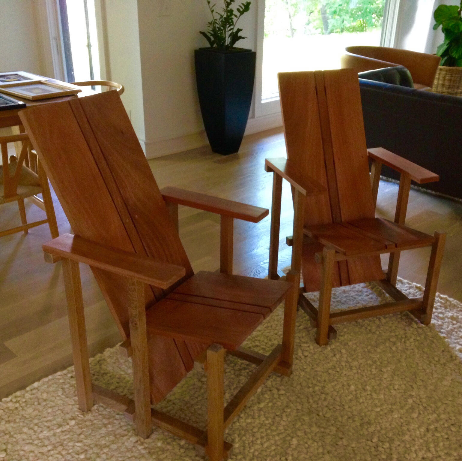 Our version of the first Adirondack chair patented in 1905. Art deco, modern with a tall back. Pine, cedar, and mahogany.