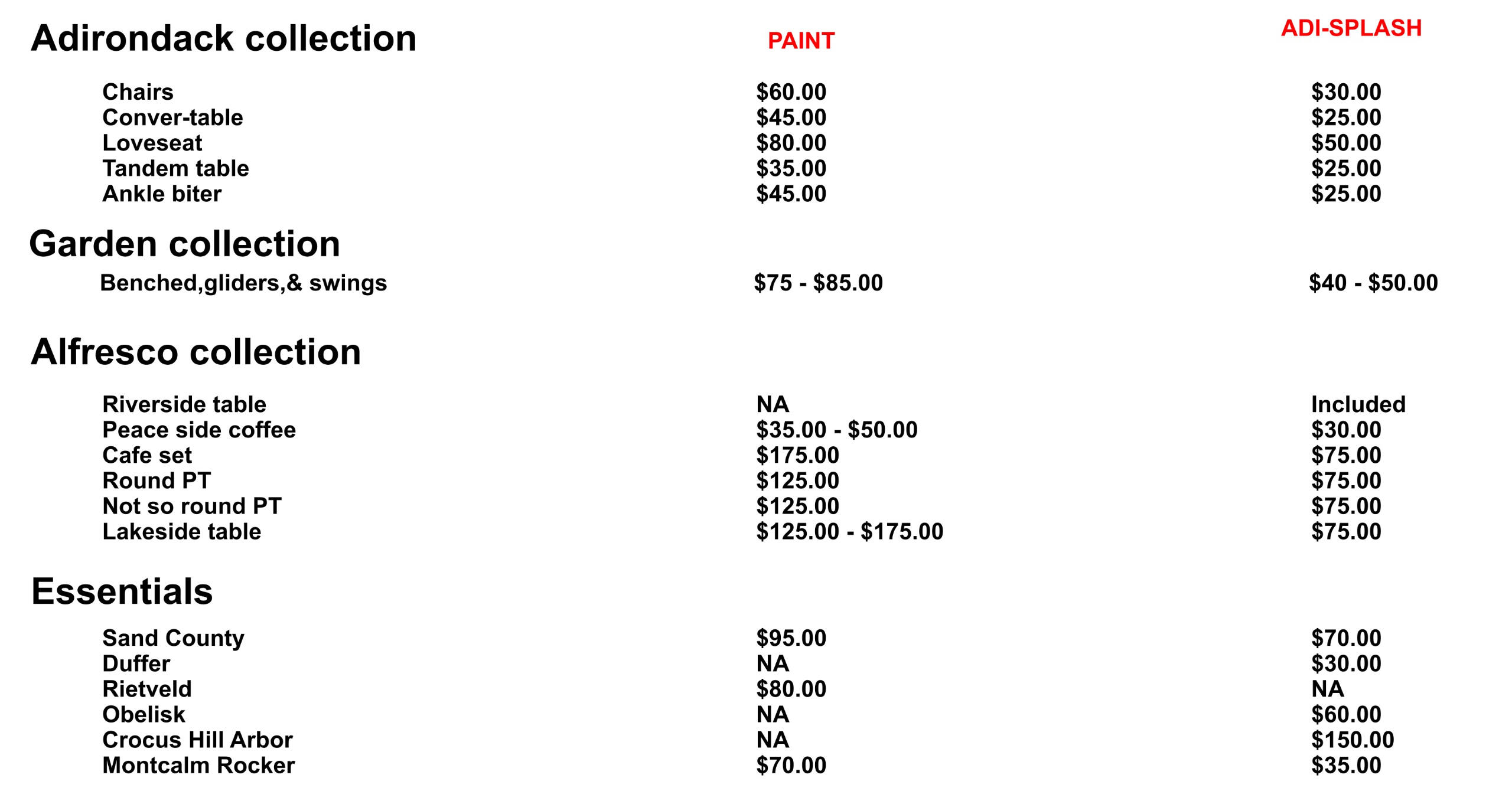 we began our furniture company with one product - the adi-sac Adirondack chair kit. We perfected the design and packaged it in a heavy burlap sack. Woodstock Kits assemble with remarkable ease. All you need is some glue, a Phillips screwdriver, a little bit of time, and you can have the pleasure of building something functional and beautiful that will last for years. If building a kit doesn’t fit your schedule, and you live within our delivery area, just order your Furniture assembled and we will deliver it to your favorite garden spot.